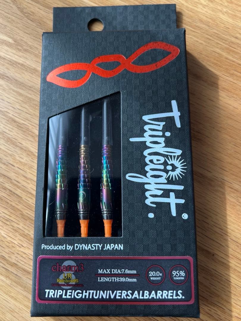 COSMO DARTS 笠毛 広平モデルのバレルです。極少量生産の限定品で激レアです。コレクションにしていたのであまり使っていません。写真はセッティング例です。バレルのみ送付■商品のスペック材質:タングステン90%全長:48.0mm最大径:7.2mmバレル重量:19.5g形状:トルピード刻み:リングカット, 縦カット規格:2BA■商品の説明長めなグリップエリアの2種類のリングカットが、水中を自由自在に泳ぎ回る魚の様に抜群の操作性を生む。いわゆるロングトルピードなルックスながら、バレル前方の目を引く魚をモチーフにした刻印がアクセント。流行りのストレートバレル使いの方にもオススメな逸品。