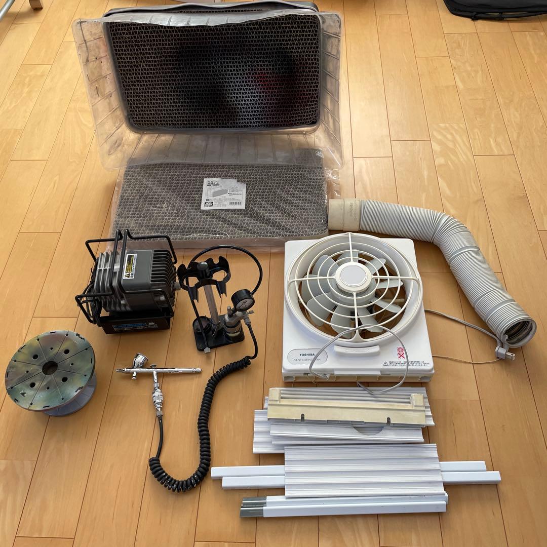 御覧いただきありがとうございます。MrホビーGSIクレオス リニアコンプレッサーL5/エアブラシ/レギュラーセット PS305です。-ブランド名:GSIクレオス Mr Hobby-製品名:Mr.LINEAR COMPRESSER SYSTEM-製品タイプ:リニアコンプレッサー-付属品:レギュラープラチナセット今回特別に別売りMr.リニアコンプレッサー用アクセサリーパーツ・PS282:ドレン&ダストキャッチャー (税込¥3.150-)・PS245:エアホース PS細スパイラル(¥1.260-)上記のアクセサリーをお付けします。GSIクレオス製、静かな作動音と低い振動で高い信頼性を兼ね備えたエアブラシキットです。3年前にAmazonにて¥57.740-で購入し3回程(時間にして6時間程使用)使用し暗所に保管しておりましたので比較的綺麗です。リニアコンプレッサーセットL5は模型用コンプレッサーのスタンダードモデルになります。扱い易いダブルアクション式エアブラシPS274をはじめエアーレギュレーターも付属していますので購入後直ぐに塗装作業を行う事が出来ます。付属のエアブラシPS274プロコンBOY WA 0.3m mノズル口径も最も標準的な0.3m mを採用しています。全体塗装の太吹きから迷彩塗装やグラデーション塗装等もこなせる扱い易いスタンダードタイプのエアブラシですボタンからエアバルブへラインが本体と斜めに交差するデザインで持った時に自然と手に馴染みます。外箱には小さな傷等がございますので完璧な物を求められる方はご遠慮下さいます様にお願いします。発送前に正常動作確認をしています。動作音は静かで金属音もしません。動作確認後Mrウスメ液でエアブラシ内部と塗料カップを洗浄していますが多少の汚れがございます。欠品もなく比較的に綺麗だと思います。※セット内容リニアコンプレッサーL5本体エアブラシ:PS274 プロコンBOYWAダブルクッション式0.3m mエアホース1m長/1.5m長(口径PS細)直付エアブラシホルダー✖️2個1/8(S)凹PS細用ジョイント1/8(S)凸PS細用ジョイントNC.NRで宜しく御願いします。
